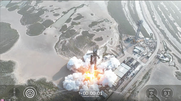 “星舰”第九次发射瞬间的直播画面截屏